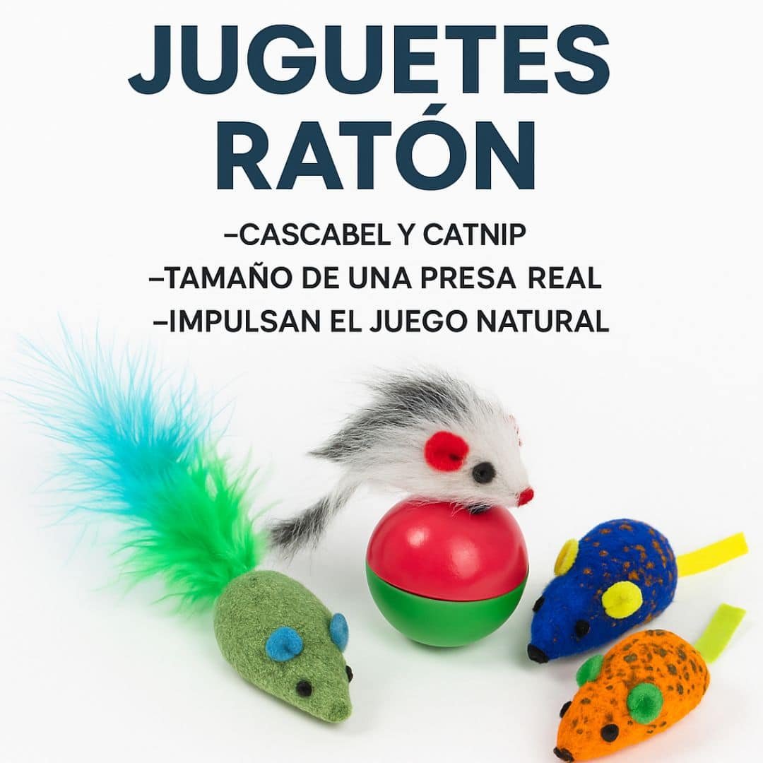 Ratones con cascabel y catnip – del tamaño de una presa real, activan su instinto de caza.